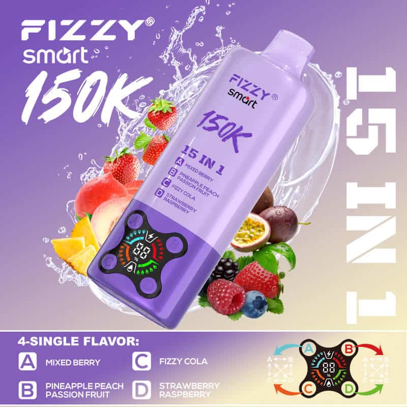 Fizzy 150K Puffs – 15-in-1 Smart Multi-Flavor Rechargeable Disposable Vape