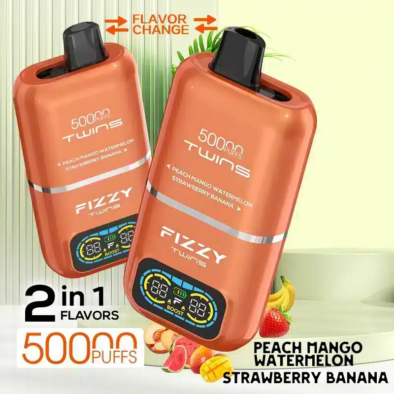 Fizzy Twins Peach Mango Watermelon & Strawberry Banana – 50000 Puffs Disposable Vape